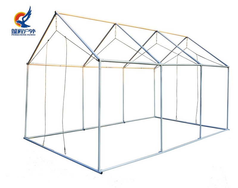 तम्बू की विश्वसनीयता सबसे पहले आयामों और सामग्रियों में उत्कृष्टता की खोज से उत्पन्न होती है। पेंगचेंग आउटडोर उच्च-गुणवत्ता वाले उच्च-आवृत्ति वेल्डेड पाइपों का उपयोग करता है, जो सीएनसी पाइप झुकने वाली मशीनों के साथ उच्च-परिशुद्धता झुकने वाली प्रसंस्करण से गुजरते हैं ताकि यह सुनिश्चित किया जा सके कि प्रत्येक ब्रैकेट डिज़ाइन की गई चोटी की ऊंचाई और ईव ऊंचाई से सटीक रूप से मेल खाता है - यह तेजी से तम्बू असेंबली और समग्र संरचनात्मक स्थिरता के लिए भौतिक शर्त है। सभी स्टील पाइपों को एक मजबूत संक्षारण प्रतिरोधी सुरक्षात्मक परत बनाने के लिए पेंट छिड़काव उपचार से गुजरना पड़ता है। तम्बू के कपड़े की गणना और सटीक आयामों के अनुसार कटौती की जाती है: हम दो तरफा पीवीसी कोटिंग के साथ उच्च घनत्व वाले जलरोधक ऑक्सफोर्ड कपड़े का उपयोग करते हैं, जो वॉटरप्रूफिंग, फफूंदी प्रतिरोध और यूवी प्रतिरोध जैसे कई कार्यों को एकीकृत करता है, जिससे उत्पाद स्थायित्व और सामग्री के नजरिए से आसान रखरखाव सुनिश्चित होता है।