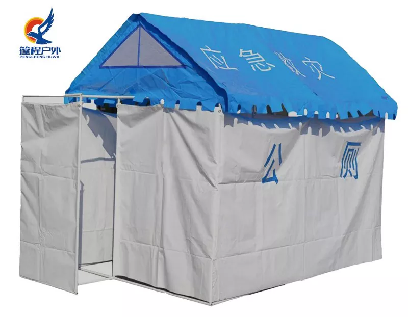 पेंगचेंग आउटडोर का आपातकालीन आपदा राहत शौचालय टेंट दो संस्करणों में उपलब्ध है: राष्ट्रीय मानक और गैर-मानक। 3.9 मीटर (लंबाई) × 2.4 मीटर (चौड़ाई) × 1.76 मीटर (ईव ऊंचाई) × 2.66 मीटर (शिखर ऊंचाई) के आयामों के साथ, तम्बू 4 मानक स्क्वाट शौचालय, विकलांग-सुलभ शौचालय का 1 सेट, पुरुषों के मूत्रालय सुविधाओं के 3 समूह और एक सेंसर प्रकाश व्यवस्था से सुसज्जित है।