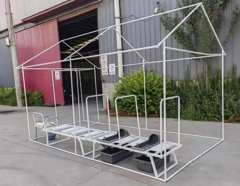 आपातकालीन आपदा राहत शौचालय तम्बू में दोहरी ढलान वाली ऊर्ध्वाधर दीवार संरचना है। स्टील फ्रेम को जंग रोधी उपचार से गुजरना पड़ता है, कैनोपी जलरोधक और ज्वाला-मंदक सामग्री का उपयोग करता है, और सेनेटरी वेयर उच्च शक्ति वाली सामग्री से बना होता है जिसमें मोल्ड बनाने से सटीक आयाम सुनिश्चित होते हैं। सेंसर लाइटिंग सिस्टम ने वाटरप्रूफ और शॉकप्रूफ परीक्षण पास कर लिया है, जो बाहरी उपयोग के लिए उपयुक्त है। एक मॉड्यूलर डिजाइन अवधारणा को अपनाते हुए, तम्बू त्वरित असेंबली और डिससेम्बली को सक्षम बनाता है - स्टील फ्रेम कनेक्शन स्नैप-ऑन जोड़ों का उपयोग करते हैं, जिससे टूल-फ्री सेटअप की अनुमति मिलती है। वेंटिलेशन सिस्टम आंतरिक वायु परिसंचरण को बनाए रखने के लिए कीट-प्रूफ स्क्रीन के साथ एक संवहन डिजाइन को अपनाता है।